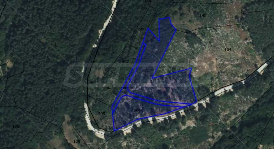 Посочената обща площ от 11 445 кв.м е разделена на два имота, съответно с площ от 7210 кв.м и 2842 кв.м, а между тях минава път с площ от 1393 кв.м.