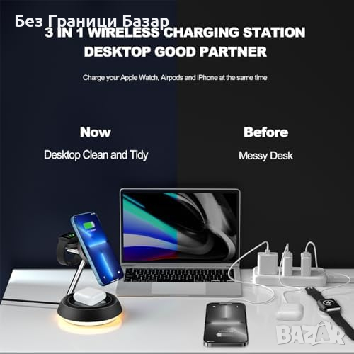 Безжично зарядно за Apple устройства: 3 в 1 станция за бързо зареждане с мощност 15W.