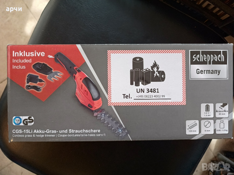 Scheppach акумулаторна ножица за трева и храсти CGS-15Li батерия 3,6 V 1,5 Ah и захранване