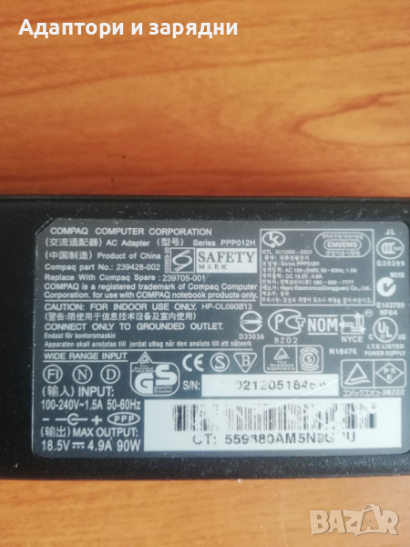 Адаптер за лаптоп Compaq 18.5v 4.9A 90W, снимка 1 - Лаптоп аксесоари - 44528687 Адаптер за лаптоп Compaq 18.5v 4.9A 90W, снимка 2 - Лаптоп аксесоари - 44528687 Адаптер за лаптоп Compaq 18.5v 4.9A 90W, снимка 3 - Лаптоп аксесоари - 44528687 1/3