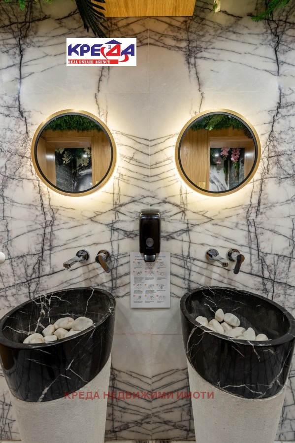 Кухня: кухнята се предлага напълно оборудвана с функция за упралвление на поръчките чрез дисплей. Разполага с най-съвременни професионални уреди: конвектомат, пет хладилни плюсови маси, две хладилни минусови камери с голям обем, вакум уред, паста кукер, газова скара и котлони, фурна за хляб и пица, тестомесачка, месомелачка, миксер, фритюрник, плоча, климатик, перфектна професионална аспирация АТАРО и др.; складово помещение, сервизно помещение. Отделно помещение за газови бутилки!