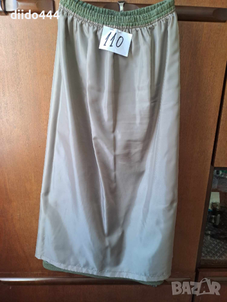Светло зелена плетена, вълнена дамска пола. Размер №-46. Плътна материя. С ластик на талията. Отвътре е подплатена с хастар. Отзад е с цепка на средата. Размерите са: дължина-80 см. Талия без разтегнат ластик-58 см., с разтегнат ластик-96 см. Много приятен цвят. Без забележки. Изпращам с ЕКОНТ или СПИДИ, пожелание на клиента.