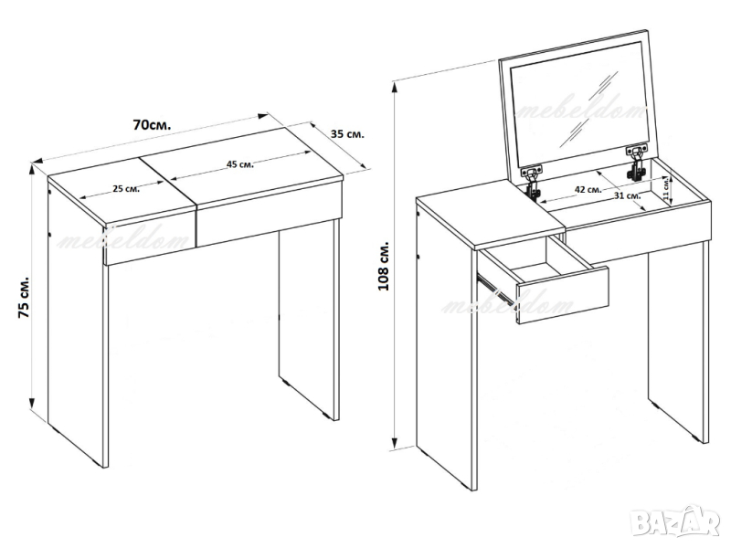 Тоалетка 70см. с чекмедже и огледало(код-1359)