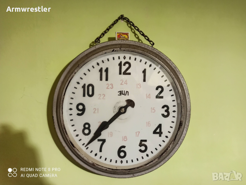 Много рядък руски механичен часовник ЗЧЛ. Диаметърът на корпуса е около 50 см. Здрав механизъм има нужда от профилактика! Запазен! Окачва се с верига за стената.