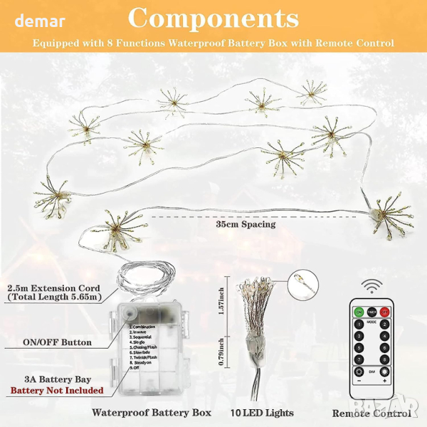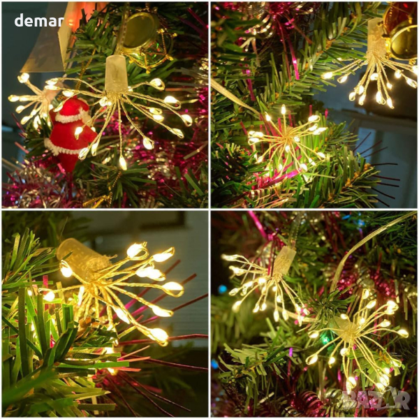 KINGCOO LED светлини фойерверк верижни за декорация с батерии и дистанционно управление, топло бяло