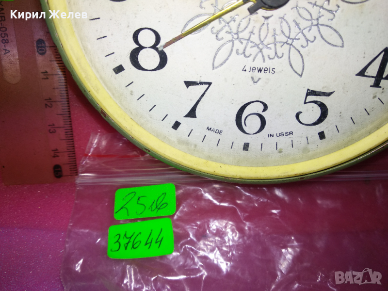 JANTAR MADE in USSR Стар КОЛЕКЦИОНЕРСКИ РУСКИ БУДИЛНИК МЕХАНИЧЕН НАСТОЛЕН ЧАСОВНИК ЯНТАР СССР 37644