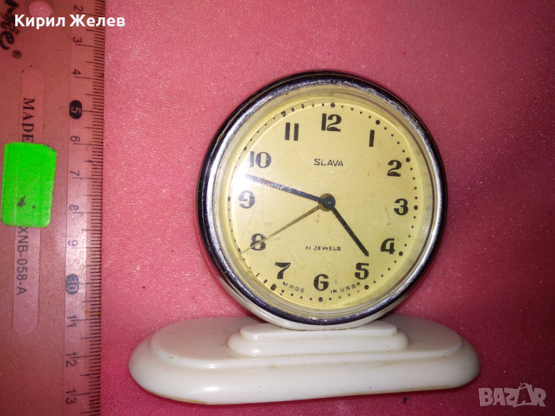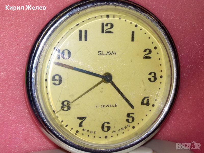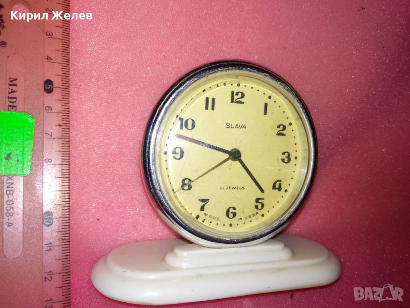SLAVA MADE in USSR Стар КОЛЕКЦИОНЕРСКИ РУСКИ БУДИЛНИК МЕХАНИЧЕН НАСТОЛЕН ЧАСОВНИК СЛАВА СССР 43094