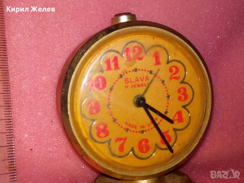 SLAVA MADE in USSR Стар КОЛЕКЦИОНЕРСКИ РУСКИ БУДИЛНИК МЕХАНИЧЕН НАСТОЛЕН ЧАСОВНИК СЛАВА СССР 43025