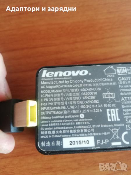Адаптер за лаптоп Lenovo 20v 2.25A model: ADLX45NCC3A → Обява 44534913