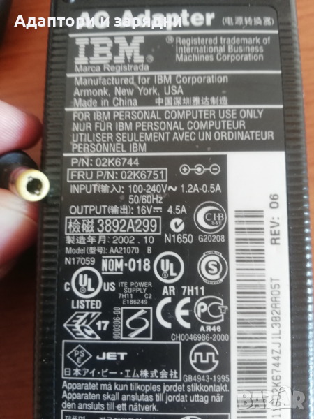 Адаптер за лаптоп IBM 16v 4.5A → Обява 44535015
