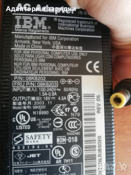 Адаптер за лаптоп IBM 16v 4.5A → Обява 44535027