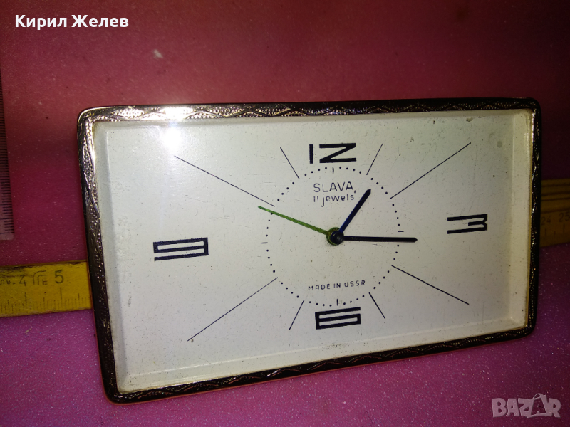 SLAVA MADE in USSR Стар КОЛЕКЦИОНЕРСКИ РУСКИ БУДИЛНИК МЕХАНИЧЕН РЯДЪК ЧАСОВНИК СЛАВА СССР 43497