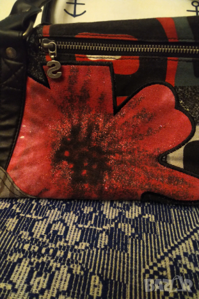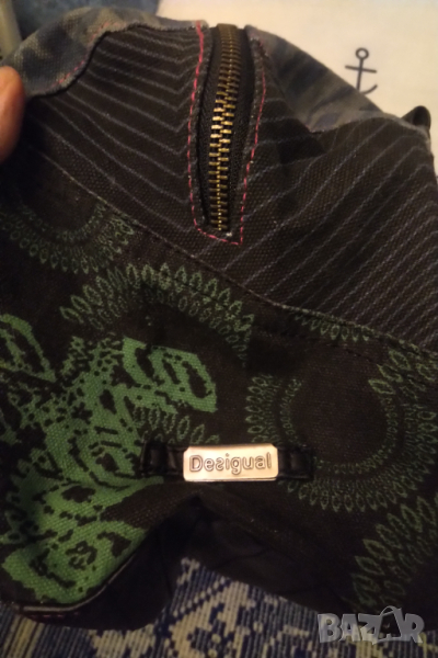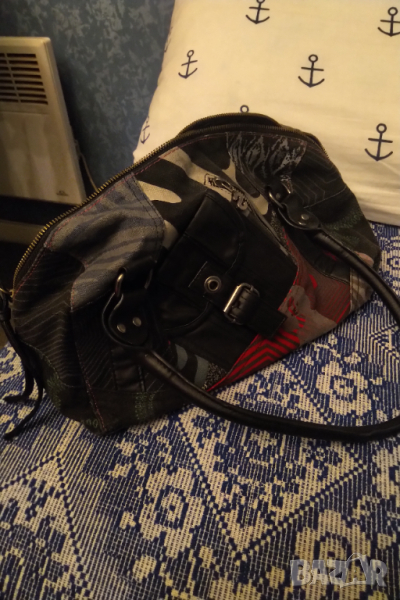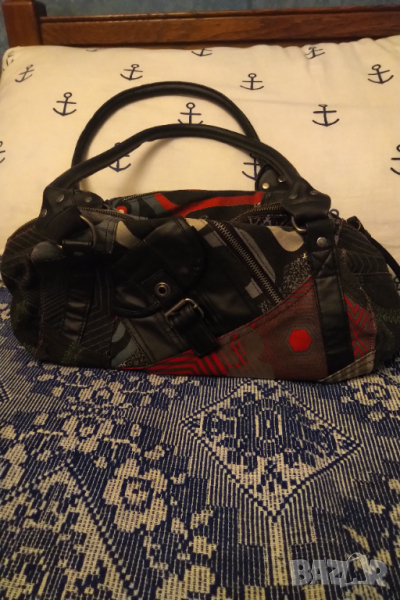 100%оригинална с логото на всички метални елементи .Плат и еко кожа .размер 40 на 25 см дъно широко 15 см дръжките се носят и през рамо 25 см .Без никакви забележки .Може само да се изпере седяла е дълго без да е носена .Цветовете са наситени и много запазени ,вътрешната част е като нова с едно основно отделение и две по малки ,затваря се с цип .КРАЙНА ЦЕНА