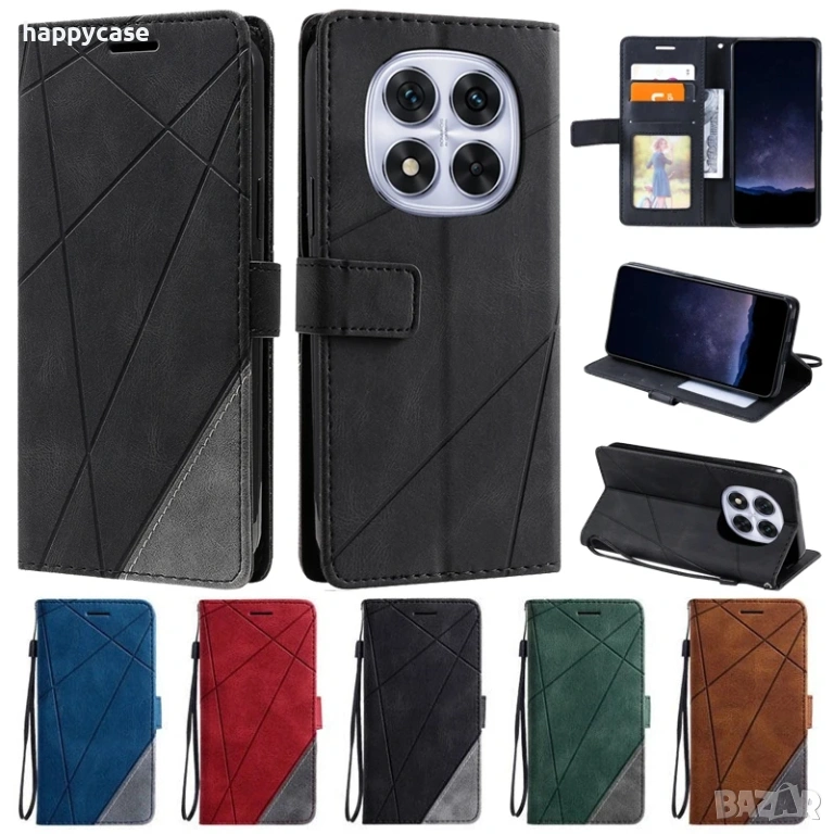 Xiaomi Redmi Note 15 14 13 Pro / TRIANGLE Кожен калъф кейс тип тефтер