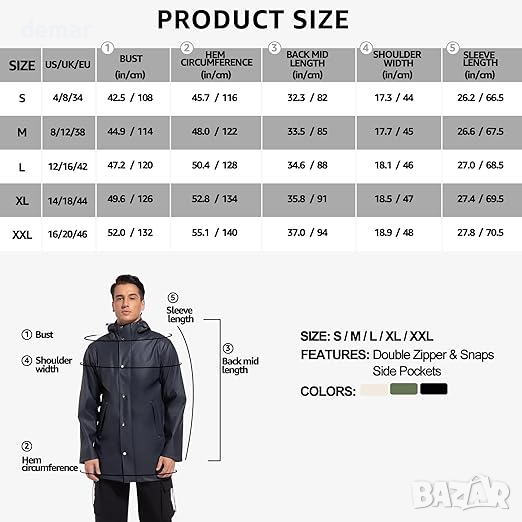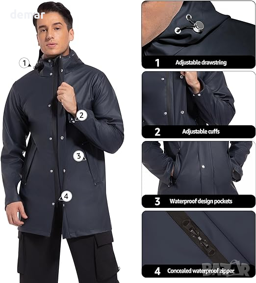 дъждобран е изработен от PET материал с PU покритие, включващ двуслойна технология за прилягане за леко, водоустойчиво изживяване. Качулката му е прецизно проектирана за защита на врата и за предпазване от студени ветрове, осигурявайки оптимална устойчивост на дъжд и топлина. Платът на якето за дъжд е подобрен с нова устойчива на износване технология на тъкане, което го прави издръжлив за интензивни планински спортове, като същевременно е устойчив на масло и петна, идеален за пътуване, спорт и приключения на открито. Ергономично ушито, якето предлага комфорт, без да ограничава движенията, подходящо за ежедневно носене и различни дейности на открито като планинарство и туризъм. Отличава се с практичен дизайн със скрити вътрешни джобове за лични вещи, а класическият му стил излъчва мъжествен чар, подходящ е и за ежедневно облекло. За грижа, нежно перете при 30°C, като избягвате избелване, сушене в сушилня, гладене и химическо чистене, за да запазите качеството си.