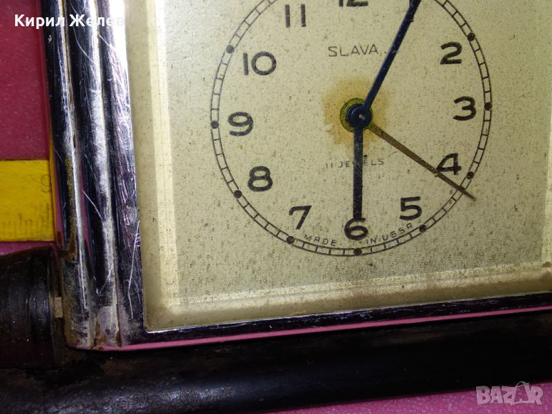 SLAVA MADE in USSR Стар КОЛЕКЦИОНЕРСКИ РУСКИ БУДИЛНИК МЕХАНИЧЕН НАСТОЛЕН ЧАСОВНИК СЛАВА СССР 36437