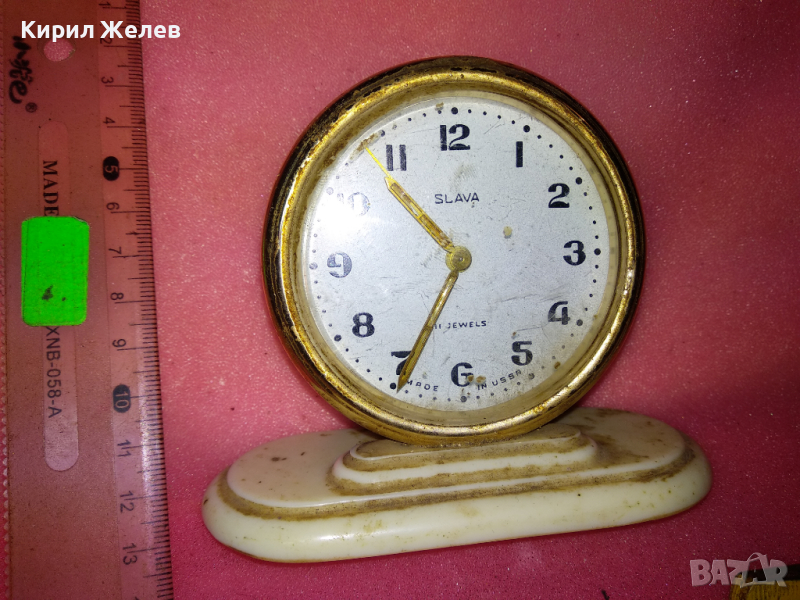 SLAVA MADE in USSR Стар КОЛЕКЦИОНЕРСКИ РУСКИ БУДИЛНИК МЕХАНИЧЕН НАСТОЛЕН ЧАСОВНИК СЛАВА СССР 13696
