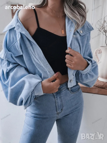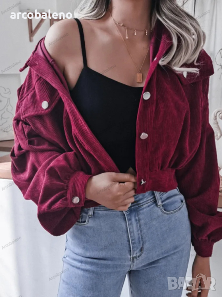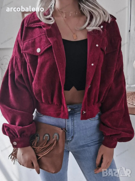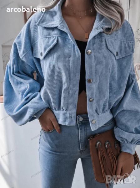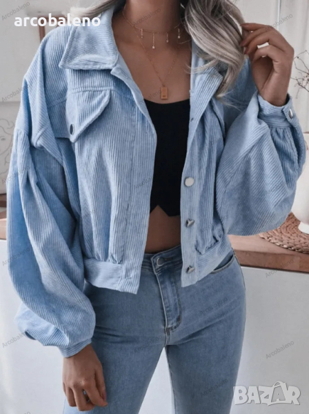 Ежедневно късо дамско кадифено яке с дълъг фенер ръкав, 3цвята