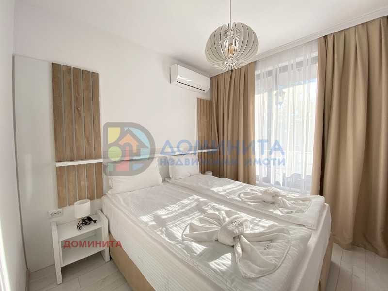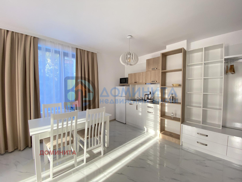 Доминита представя за продажба просторен, светъл, обзаведен двустаен апартамент в целогодишен жилищен комплекс в гр. Приморско. Сградата е въведена в експлоатация през 2022г. и разполага с асансьор, с подземен паркинг с опция за закупуване на паркомясто или ползването му под наем. Прекрасно поддържани общи части, басейн и градина.