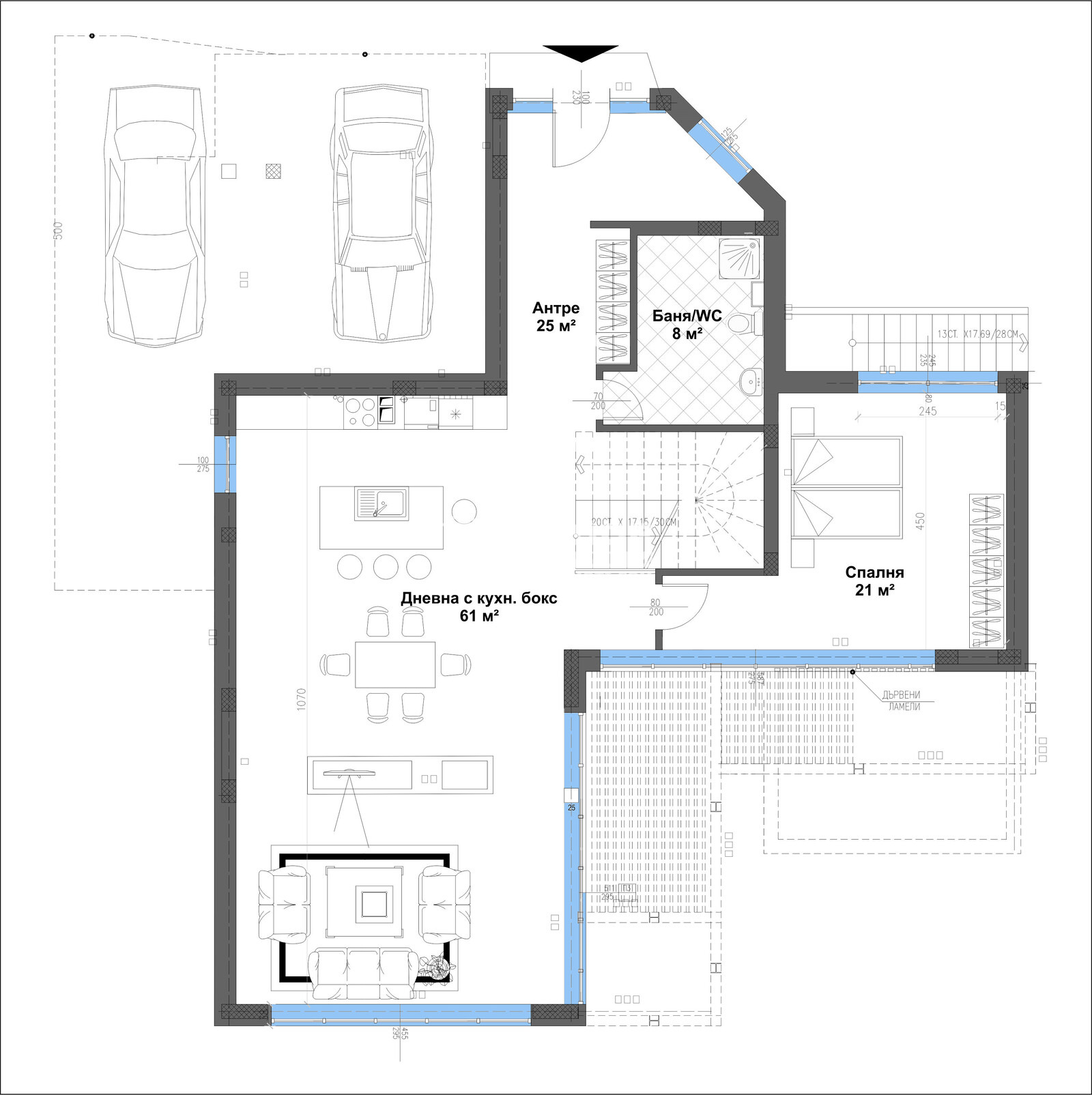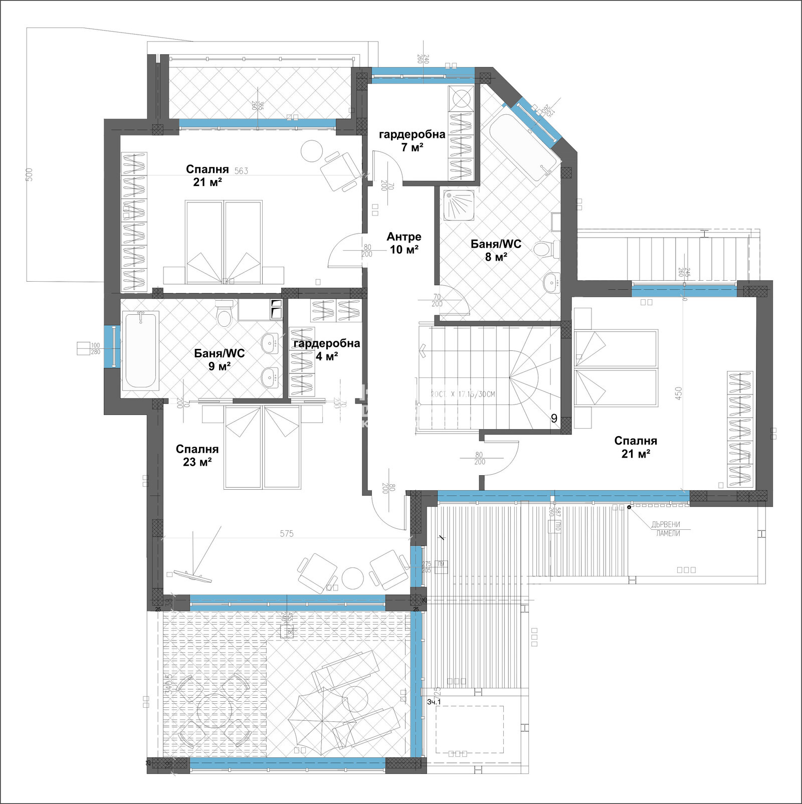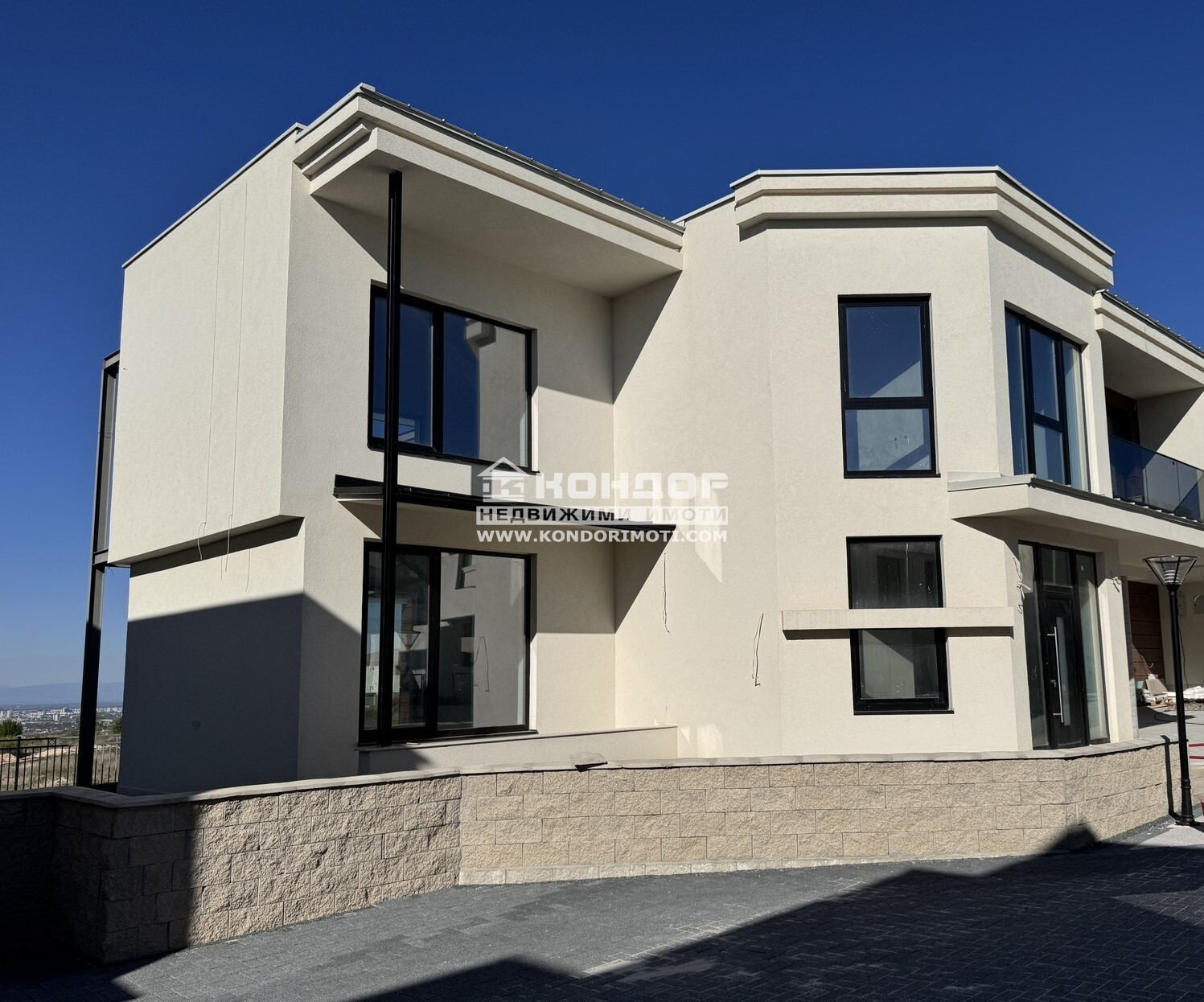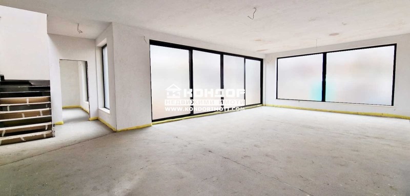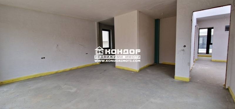 Оферта 56029: ГОТОВА КЪЩА!!! Агенция Кондор Ви предлага да закупите новоизградена къща с панорамна гледка към град Пловдив. Основните й предимства са модерната архитектура, добрата локация и функционалното разпределение на жилищната площ. Къщата е разположена в собствен двор с площ 507 кв.м и има РЗП от 460 кв.м, като 176 кв.м са сутеренна площ с обслужващи помещения. На първи жилищен етаж се намира просторна ъглова дневна с големи френски прозорци, осигуряващи светлина и уют, както и с обособена трапезария с кухненски бокс - 61 кв.м, с предвидено място за камина, една спалня с възможност за голям гардероб и френски прозорци - 21 кв.м, една баня с тоалетна - 8 кв.м, голямо и просторно входно антре - 25 кв.м. На втори етаж е разположена светла родителска спалня - 23 кв.м с излаз на тераса с възможност за поставяне на комфортна мека мебел, към стаята има прилежаща баня с тоалетна - 9 кв.м и обособено собствено гардеробно помещение - 4 кв.м, кабинет/гостна стая - 14 м2 имащ излаз на малка тераса, просторна спалня с излаз на трета тераса - 21 м2, втора баня 9 м2 и второ гардеробно помещение - 4 м2, трета спалня - 21м2, още една баня - 8 м2 и гардеробна - 7 м2, просторно и удобно входно антре. Завършена е с висококачествени материали, червена Австрийска Тухла, троен стъклопакет на шест камерна дограма, 10см. външна изолация, изградена и оформена външна планировка. Имотът е с модерна архитектура, създадена така че да създаде максимален комфорт и пространство на своите обитатели. Огромните прозорци допринасят допълнително за усещането за светлина и простор. Паркирането е подсигурено с две закрити паркоместа. Районът се оформя като квартал от новопостроени луксозни къщи и е предпочитано място от хора, избрали да избягат от забързаното ежедневие на градската среда. Съдействие за Банков Кредит с изключително изгодни условия за Клиенти на Агенция КОНДОР !!!