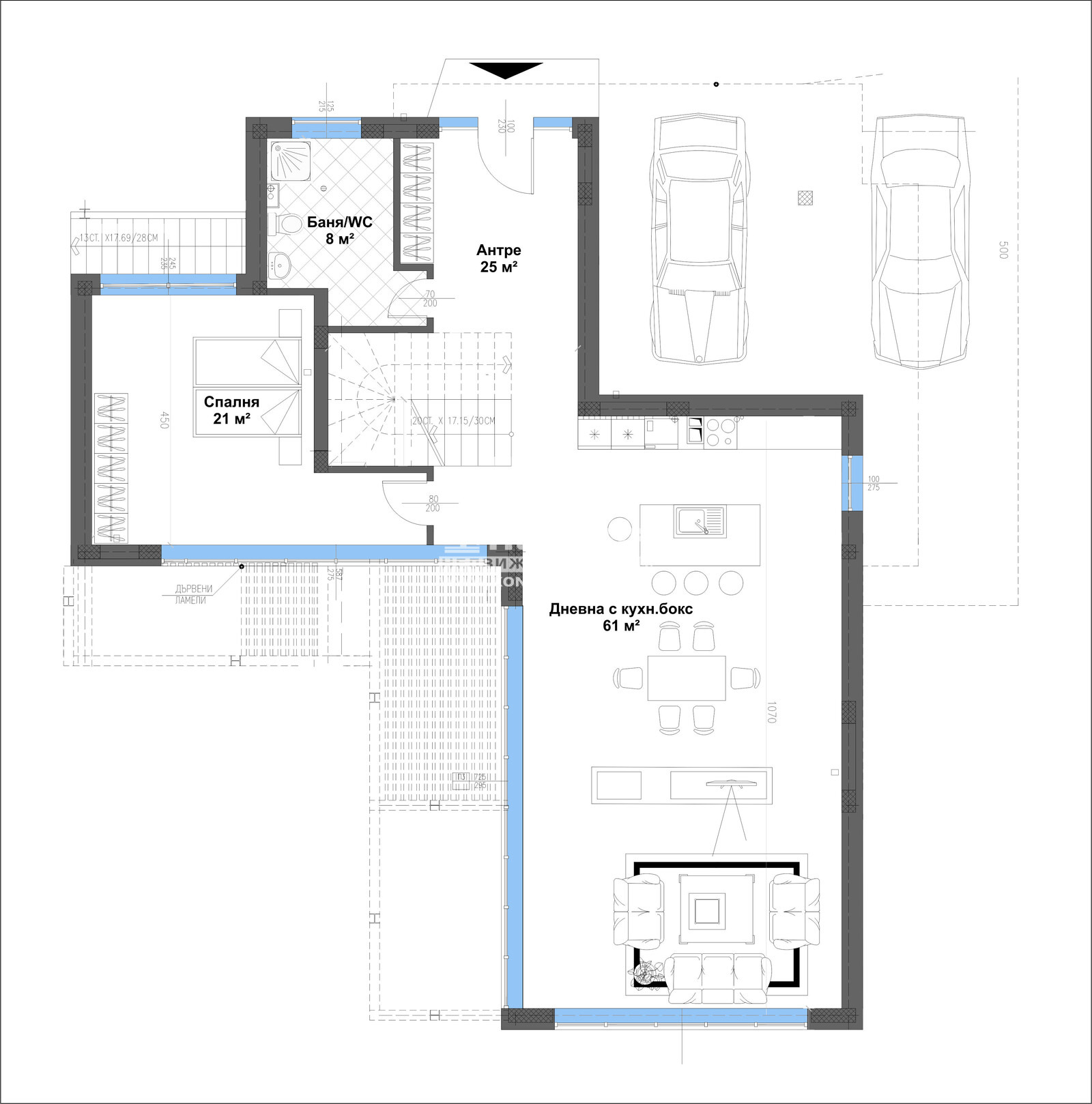 Оферта 55917: ГОТОВА КЪЩА!!! Агенция Кондор Ви предлага да закупите новоизградена къща с панорамна гледка към град Пловдив. Основните й предимства са модерната архитектура, добрата локация и функционалното разпределение на жилищната площ. Къщата е разположена в собствен двор с площ 535 кв.м и има РЗП от 326 кв.м, като 41 кв.м са сутеренна площ с обслужващи помещения. На първи жилищен етаж се намира просторна дневна с големи френски прозорци, осигуряващи светлина и уют, както и с обособена трапезария с кухненски бокс - 61 кв.м, с предвидено място за камина, една спалня с възможност за голям гардероб и френски прозорци - 21 кв.м, една баня с тоалетна - 8 кв.м, голямо и просторно входно антре - 25 кв.м. На втори етаж е разположена светла родителска спалня - 26 кв.м с излаз на тераса с възможност за поставяне на комфортна мека мебел, към стаята има прилежаща баня с тоалетна - 9 кв.м и обособено собствено гардеробно помещение - 4 кв.м, втора южна спалня - 21 кв.м с опция за голям гардероб и собствена тераса, трета източна спалня - 21 кв.м, още едно санитарно помещение - 8 кв.м, функционално гардеробно - 7 кв.м и коридор - 10 кв.м. Завършена е с висококачествени материали, червена Австрийска Тухла, троен стъклопакет на шест камерна дограма, 10см. външна изолация, изградена и оформена външна планировка. Имотът е с модерна архитектура, създадена така че да създаде максимален комфорт и пространство на своите обитатели. Огромните прозорци допринасят допълнително за усещането за светлина и простор. Паркирането е подсигурено с две закрити паркоместа . Районът се оформя като квартал от новопостроени луксозни къщи и е предпочитано място от хора, избрали да избягат от забързаното ежедневие на градската среда. Съдействие за Банков Кредит с изключително изгодни условия за Клиенти на Агенция КОНДОР !!!