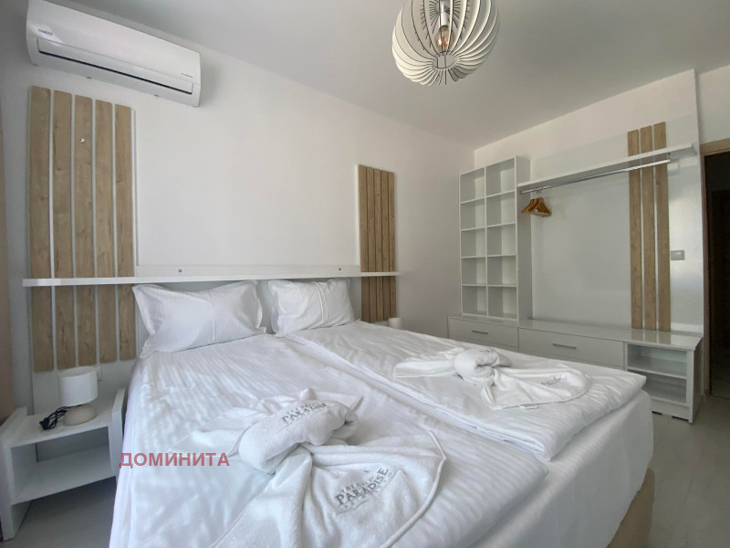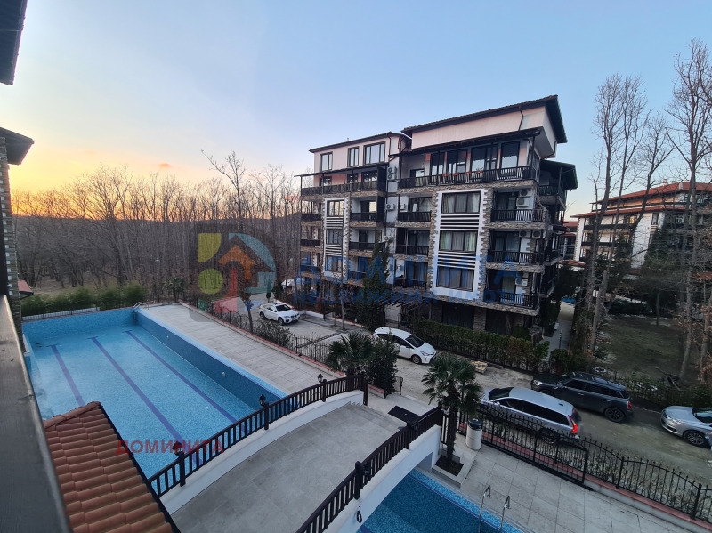 Удобства, които предлага Доминита представя за продажба комфортен, светъл, обзаведен двустаен апартамент в целогодишен жилищен комплекс в гр. Приморско. Сградата е въведена в експлоатация през 2022г., разполага с асансьор и прекрасно поддържани общи части. Апартаментът е на трети етаж и се състои от антре, комбинирана дневна с кухня, спалня, баня със санитарен възел и тераса. Апартаментът е със северно изложение (чудесно изложение за летен имот). На терасата има излаз от дневната и от спалнята. Терасата е с гледка към басейн с олимпийски размери и е прекрасно място за отдих за всички обичащи тишината и уединението. В дневната стая са оформени три зони: кухня, трапезария и дневна зона за почивка с ъглов разтегателен диван. Двете стаи са оборудвани с климатици. В дневната има телевизор, а в спалнята е предвидено място за втори телевизор. Банята е с душ-кабина, с изводи за монтаж на пералня. Сградата разполага с подземен паркинг, с опция да се закупи паркомясто или да се ползва под наем. Самостоятелни партиди за ток и вода. Удобства, които предлага комплекса: 3 басейна (единият с олимпийски размери), шезлонги, барбекю зони, паркинг (с опция за закупуване на паркомясто или ползването му под наем), ресторант, денонощна охрана и видеонаблюдение, детска стая за игри, Фитнес зала, беседки за почивка, рецепция. Годишна такса за поддръжка - 1012 евро. Опция за менажиране на апартамента като се ползват услугите на професионалния домоуправител в комплекса.