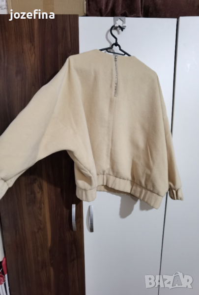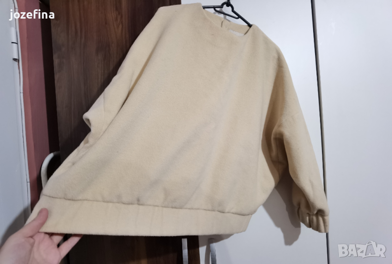 Интересна дебела блуза с паднал ръкав, кремав цвят → Обява 44544642