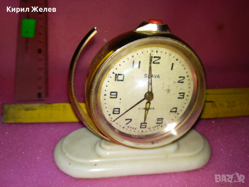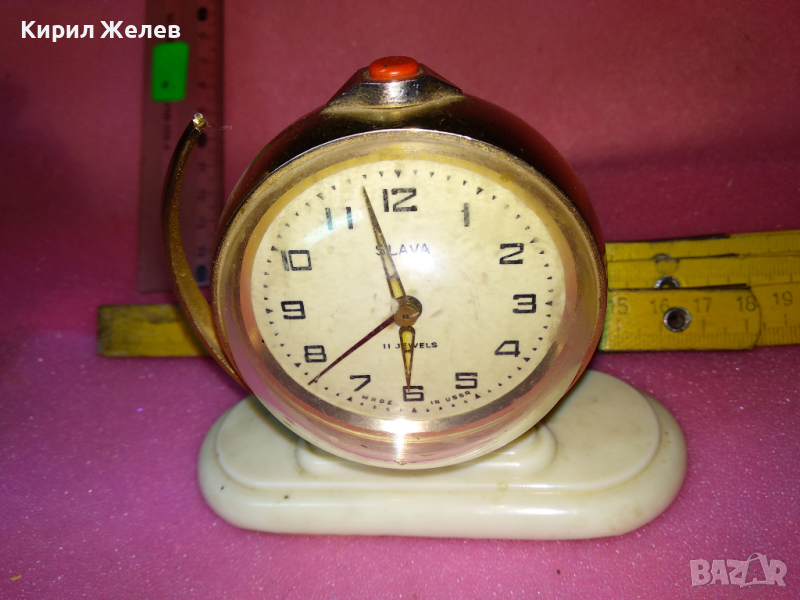 SLAVA MADE in USSR СЛАВА ГЛОБУС Стар РЯДЪК КОЛЕКЦИОНЕРСКИ РУСКИ БУДИЛНИК МЕХ. ЧАСОВНИК СССР 40894