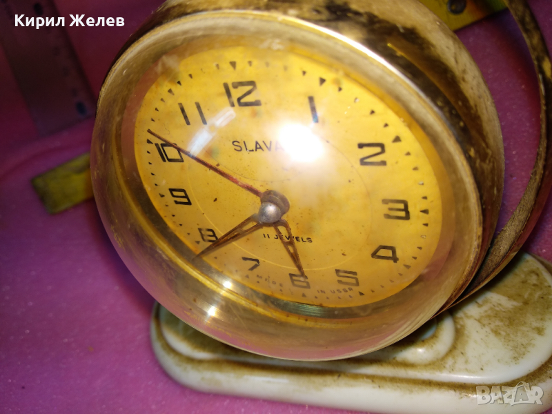 SLAVA MADE in USSR СЛАВА ГЛОБУС Стар РЯДЪК КОЛЕКЦИОНЕРСКИ РУСКИ БУДИЛНИК МЕХ. ЧАСОВНИК СССР 30501