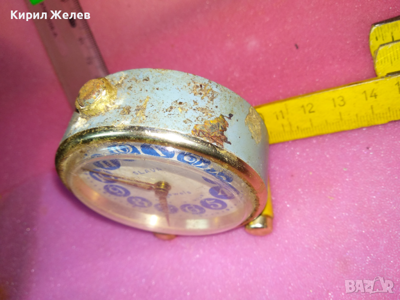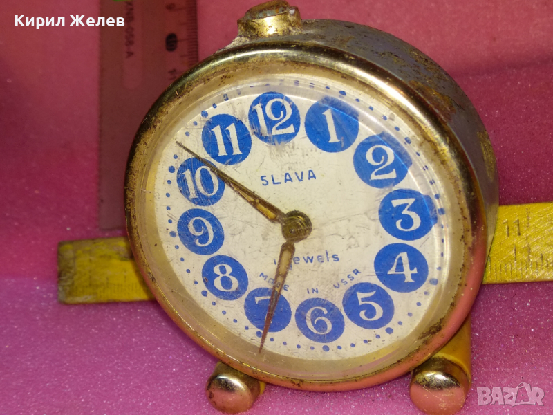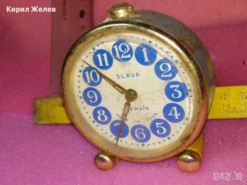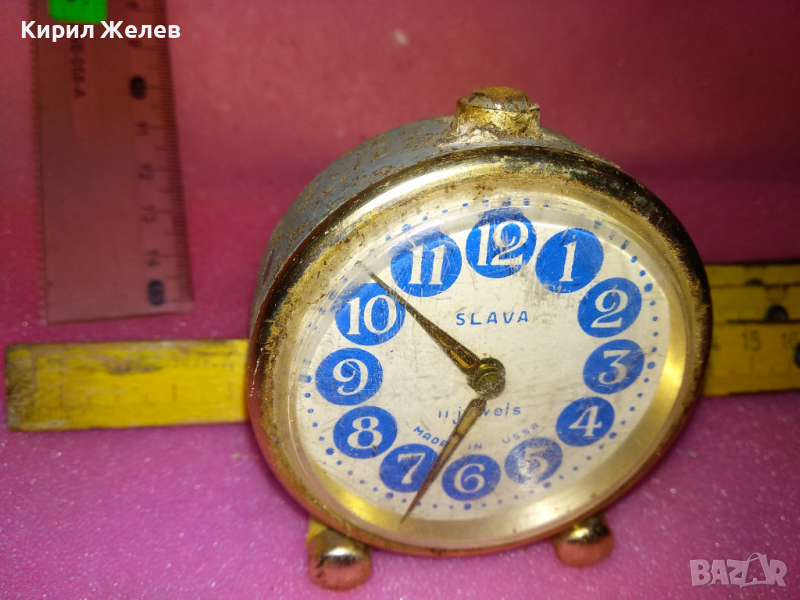 SLAVA MADE in USSR Стар КОЛЕКЦИОНЕРСКИ РУСКИ БУДИЛНИК МЕХАНИЧЕН НАСТОЛЕН ЧАСОВНИК СЛАВА СССР 43610 → Обява 44545534