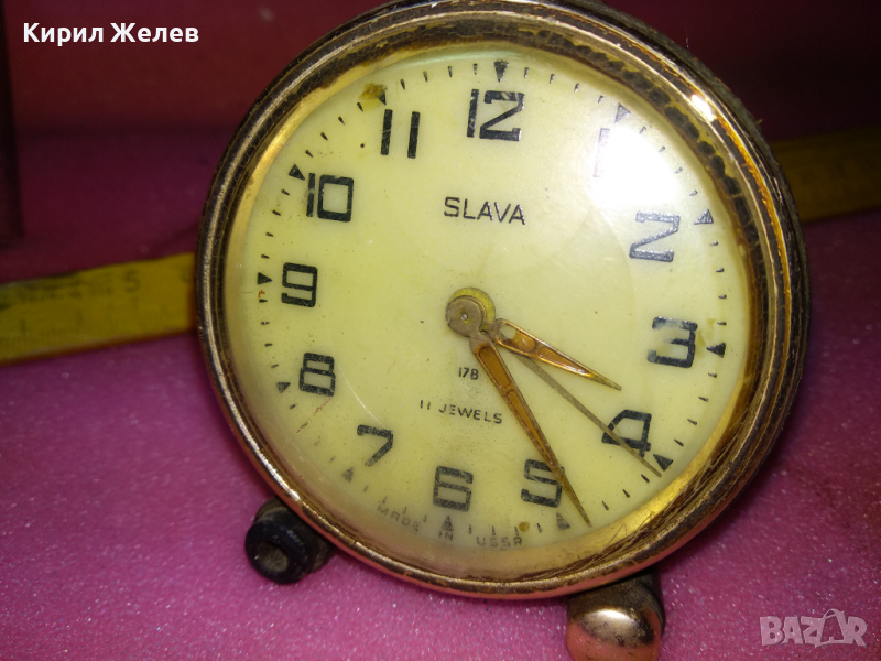 SLAVA MADE in USSR Стар КОЛЕКЦИОНЕРСКИ РУСКИ БУДИЛНИК МЕХАНИЧЕН НАСТОЛЕН ЧАСОВНИК СЛАВА СССР 43040