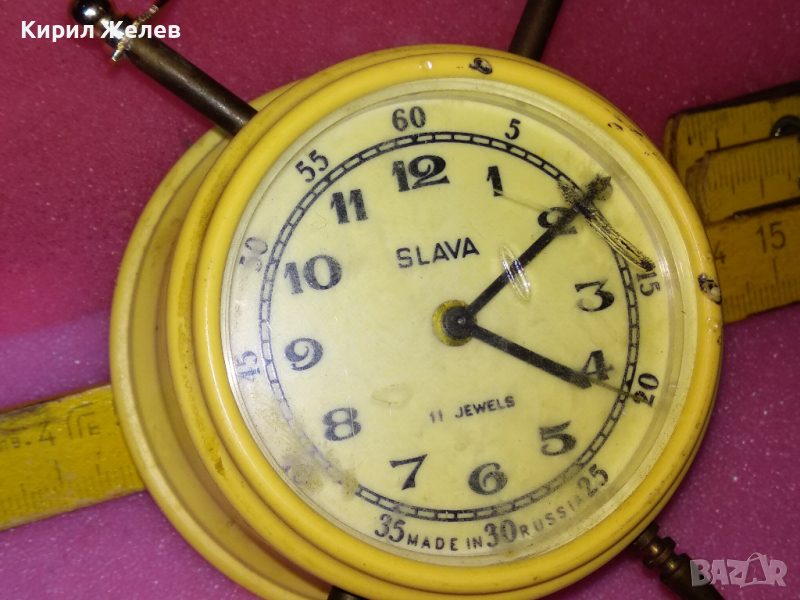 SLAVA MADE in USSR Стар КОЛЕКЦИОНЕРСКИ РУСКИ БУДИЛНИК МЕХАНИЧЕН НАСТОЛЕН ЧАСОВНИК СЛАВА СССР 30933