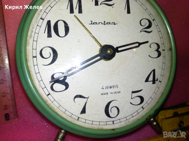 JANTAR MADE in USSR Стар КОЛЕКЦИОНЕРСКИ РУСКИ БУДИЛНИК МЕХАНИЧЕН НАСТОЛЕН ЧАСОВНИК ЯНТАР СССР 42279