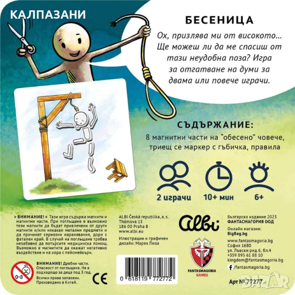Игра за отгатване на думи за двама и повече играчи, Бесеница е част от поредицата "Вечните класики в джобен формат" и е магнитна версия на любимата вечна класика в игрите. Кутийката е лека, малка и компактна. Много тънка, тя влиза без проблем във всяка раница или джоб, за да можеш да я вземеш навсякъде.