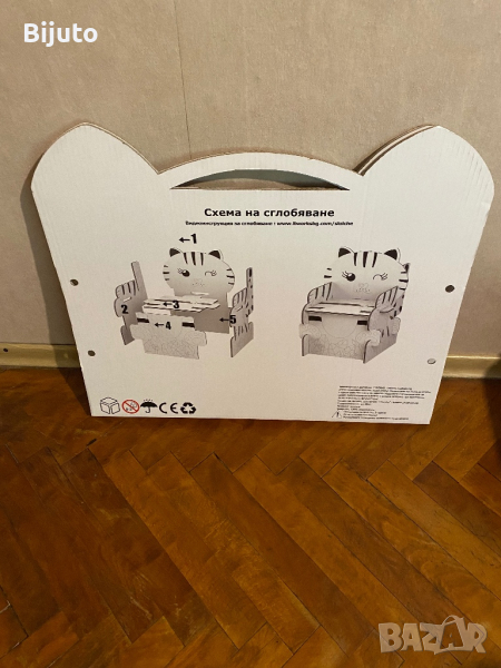 Платнена къщичка сгъваема,килимче и картонен стол → Обява 44554500