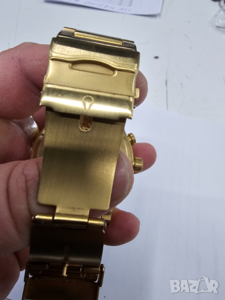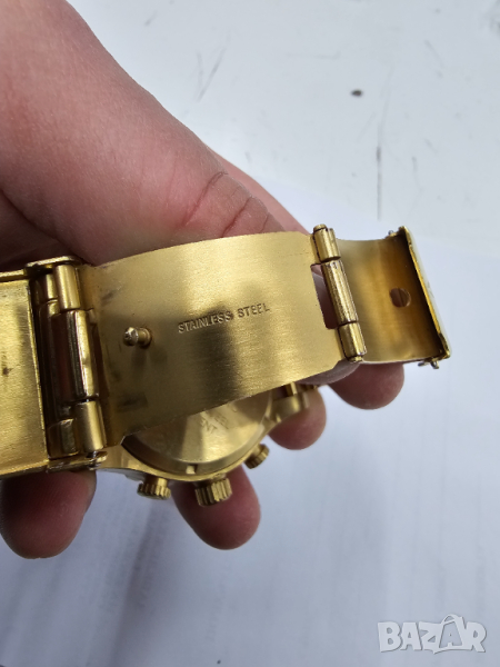 Солидна изработка от неръждаема стомана с двустранно закопчаване и на каишката и златно покритие.