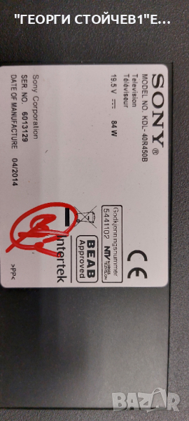 KDL-40R450B ДЕФЕКТЕН ДИСПЛЕЙ 1-889-355-11 SAMSUNG 2013SONY40A 3228 05 REV1.0 → Обява 44559671