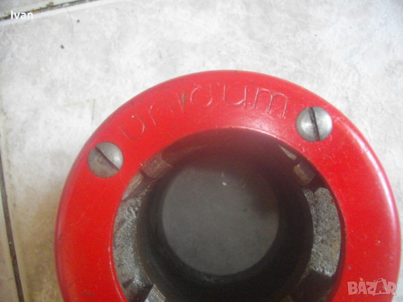 ОПИСАНИЕ на резбонарезна глава размер 2 цола за винтонарезка - 199 лв. Почти нова. Марка немска професионална - UNICUM. Главата става за резбонарезни винтонарезки тресчотки UNICUM и някои от старите модели на VIRAX. Главата е като нова, без абсолютно никакви наранявания по зъбите на 4-те ножа. Диаметър на главата - ф 100мм, тегло - 2,0 кг. Марката има съвместимост с други марки, като Виракс винтонарезки от по-старите модели, които имат възможност за потавяне на голяма глава 2 цола. Цената на главата е твърда, крайна и не подлежи на коментар - 199 лв.