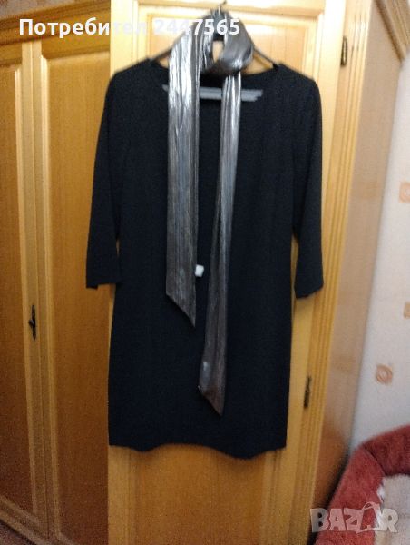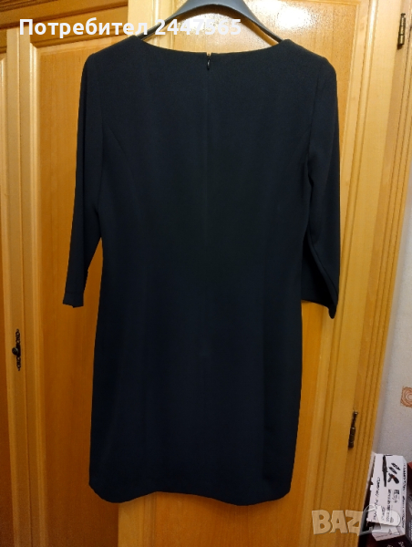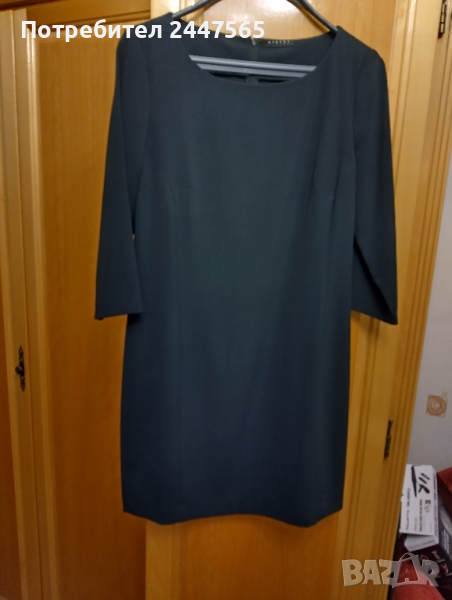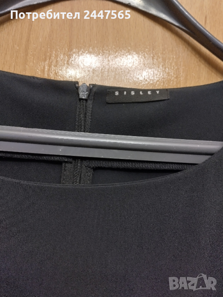 Елегантна "'малка " черна рокля. Размер S-M.Марката Sisley". Размери: дължина 84см,ханш 88см,ръкав 7/8 дължина 44см, гръдна обиколка 92см, дължина ципа 53 см по гърба, роклята без хастар ,платта е полиестер плътен, Роклята е добре запазена, облякана веднъж.Цена 25лв./бр.