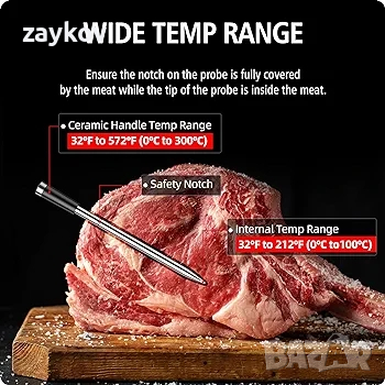 термометър за месо елиминира всички заплетени кабели, което ви позволява да се наслаждавате на дистанционна безжична свобода до 328 фута/100 метра. Идеален за електрически барбекюта, опушвачи, фурни, грилове, тигани или готвене sous vide. (Забележка: Не е подходящ за използване в микровълнови фурни и фурни с микровълнова функция)