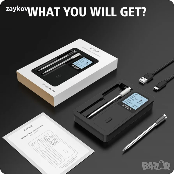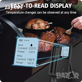 BFOUR Безжичен термометър за месо с 2 сонди за месо, Интелигентен безжичен Bluetooth