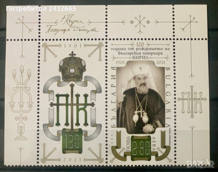 2003. България 2021 = БК 5494 :“ Исторически личности. 120 г. от рожд. на патриарх Кирил “, MNH