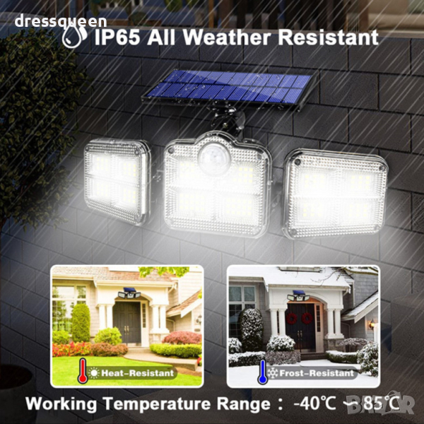 Нашият продукт може да бъде настроен според вашите собствени изисквания и оформлението на вашия апартамент или градина в много голяма степен. Соларният панел може да се върти на 180 градуса нагоре и надолу и на 160 градуса настрани. Самата LED лампа може да се върти на 90 градуса нагоре, надолу и настрани.