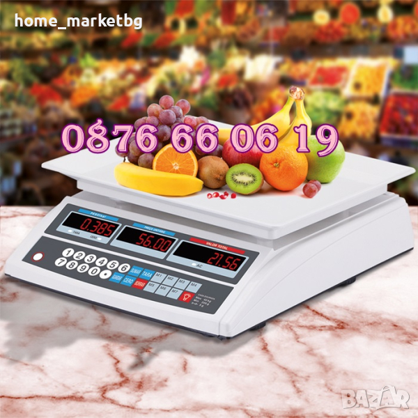 ВЕЗНА / КАНТАР ДО 40 кг. с възможност за изчисляване - Притежава вградена памет, с възможност за запомняне на до 7 артикула с цените им.