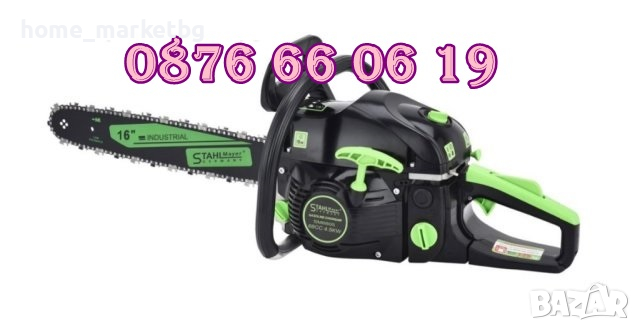 Верижен трион Stahlmayer със супер усилена мощност 68 кубика. Подходящ за поваляне на дървета, рязане на дърва за огрев, както и за строене с дървен материал.