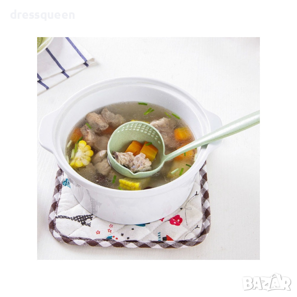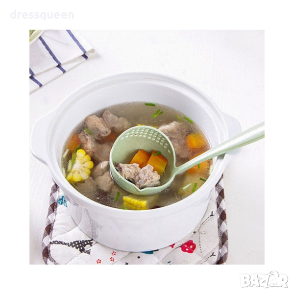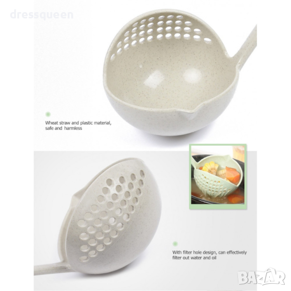 Два уреда в един - черпак и решетъчна лъжица, много удобно когато готвите, искате всичко да ви е под ръка и същевременно да не се ограждате с безброй прибори. Изцеждате излишната вода без да разпилявате храната, бързо и много лесно.