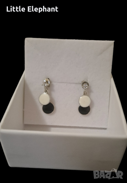 Сребърни висящи обеци, gently,кръгове,black and white/нови → Обява 44572368