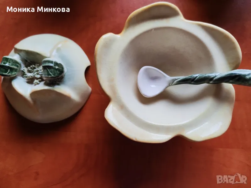 1 бр захарница във форма на цвете в преливащ цвят с капаче и лъжичка