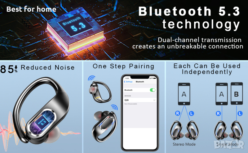 Rulafiss Q28 Безжичи слушалки, спортни Bluetooth 5.3