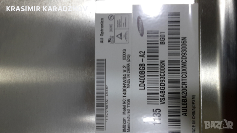 • Панел T 400HW04 V.2 със счупена матрица и подсветка в комплект с тавата - 80.00 лв